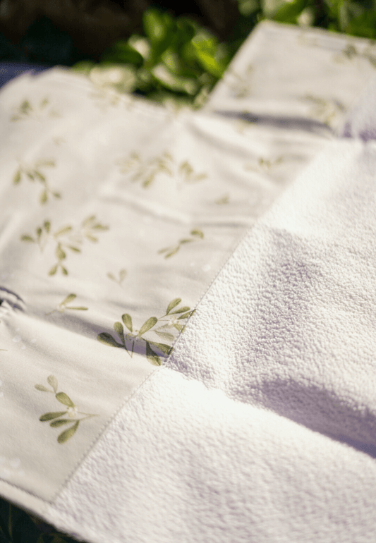 Cambiador portátil Olive Bloom · Toalla de rizo de bambú impermeable
