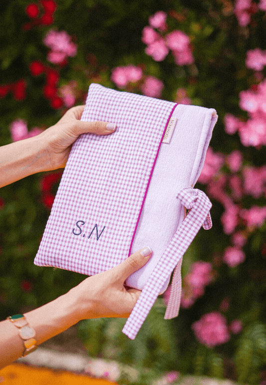 Funda de libro personalizada Lavander Vichy · Libros grandes