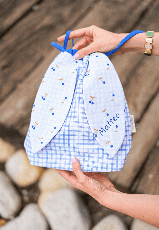 Bolsa de merienda personalizada Azul vichy