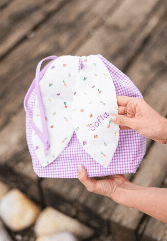 Bolsa de merienda personalizada Vichy y frutas