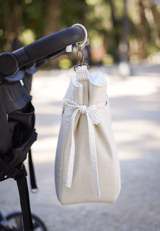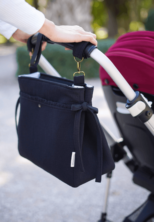 Diseños únicos, elegantes y atemporales que combinan genial con cualquier color y carrito. Todos llevan cómodos enganches para el carrito y cinta de 85cm (95cm para el bolso gemelar) para poder colgártelo.