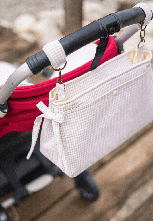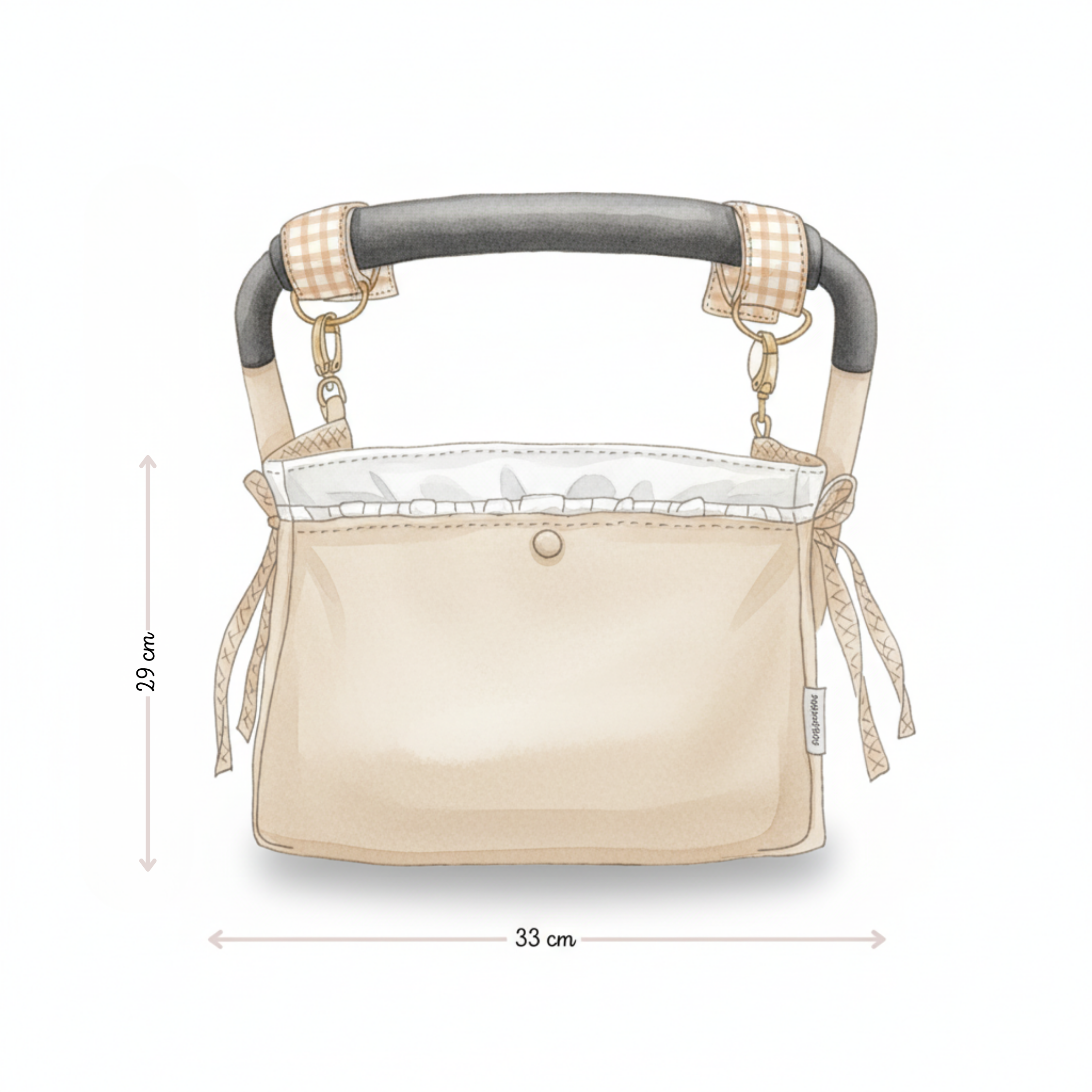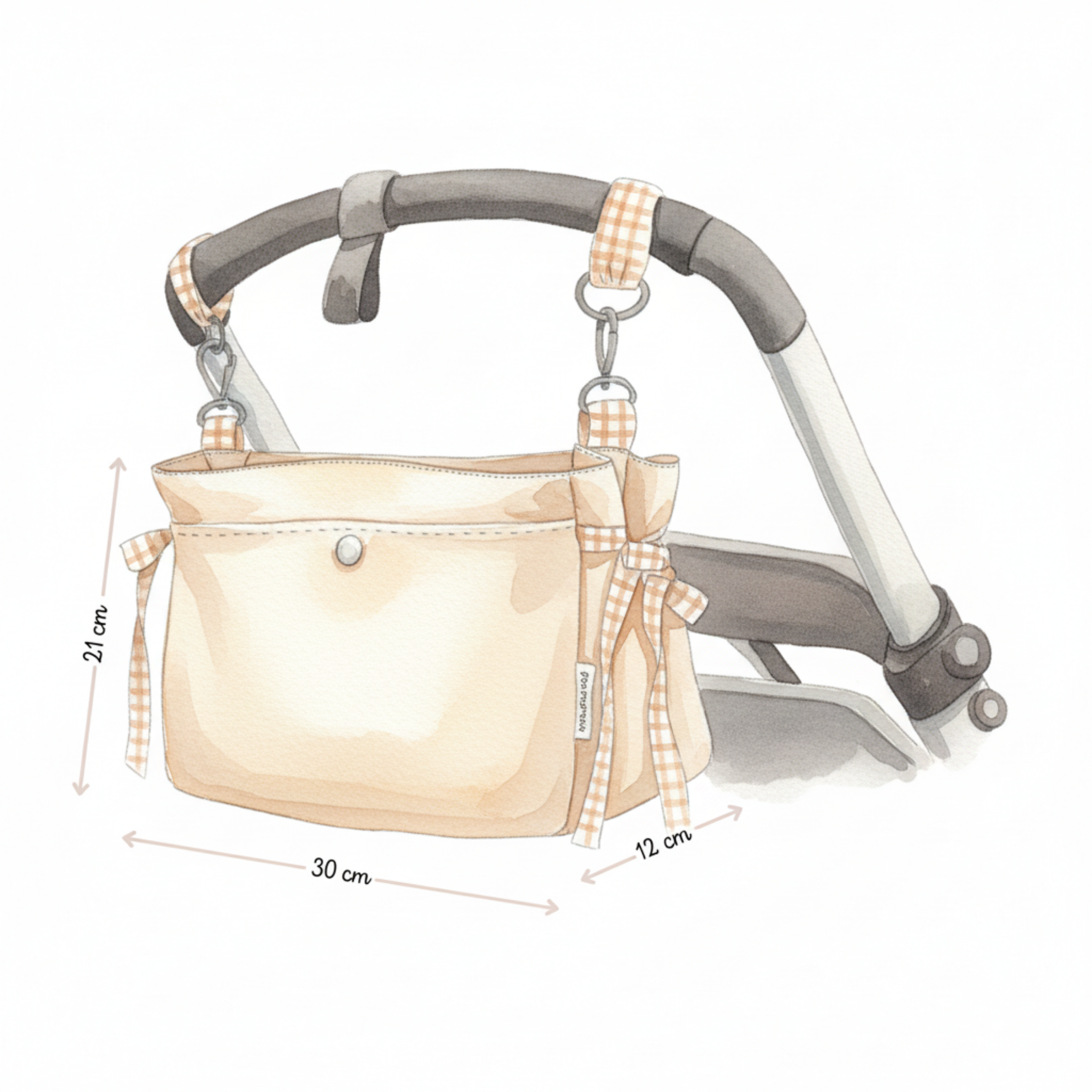 Nuestros bolsos impermeables para carro de bebé están confeccionados con algodón orgánico 100% y un interior resistente al agua que protege todo lo que lleves en su interior. Incorporan lacitos laterales para ampliar la capacidad según lo necesites, enganches seguros para fijarlos al carrito y una cinta larga para llevarlos cómodamente al hombro.