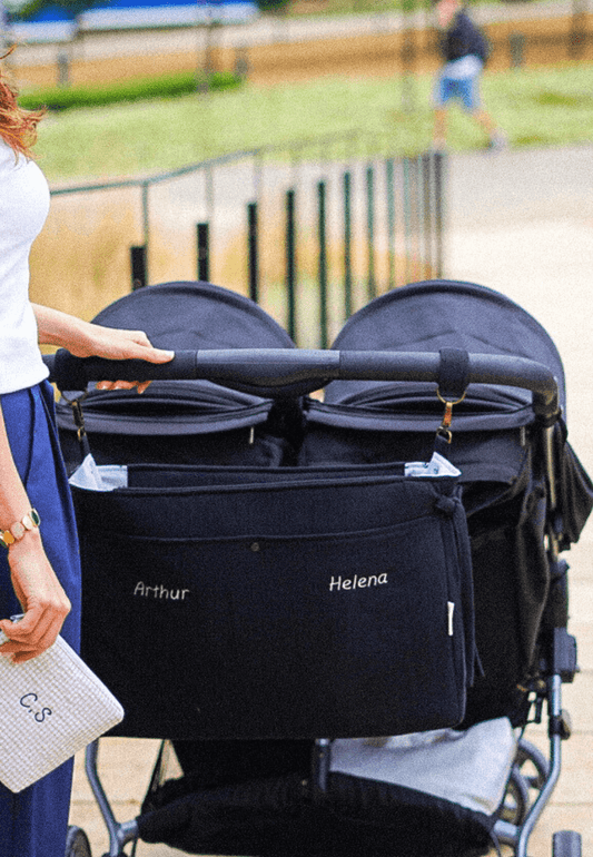Bolso de carro gemelar – Riviera Stripe – Gran capacidad, organizado y personalizado