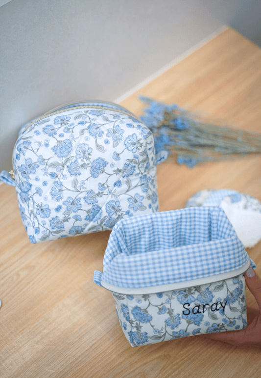 Neceser de viaje personalizado (M) | Basket & Cosmetic bag Blue Collection