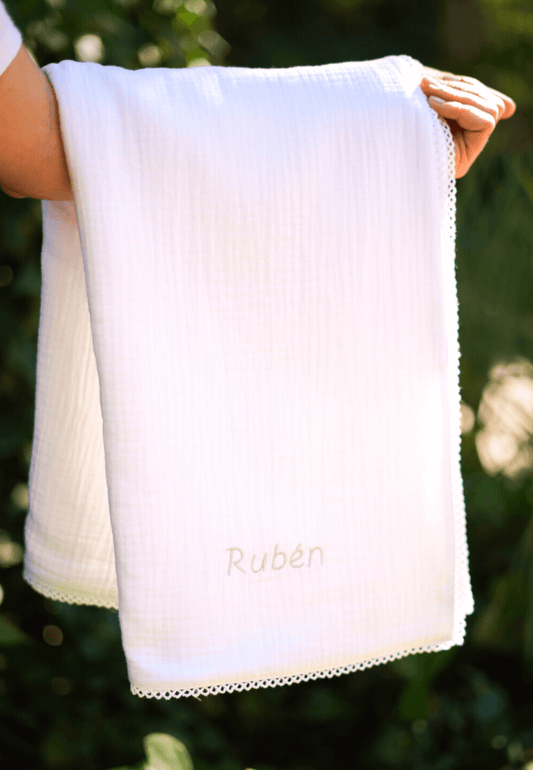 Manta para bebé personalizada blanca con puntillita (Verano y entretiempo)