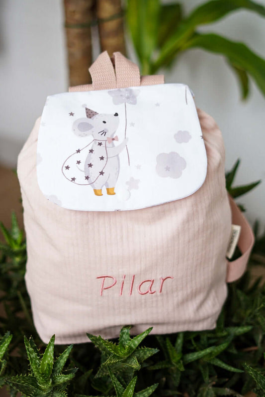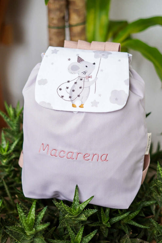Mochila de tela para bebé gris&mostaza Baby mouse