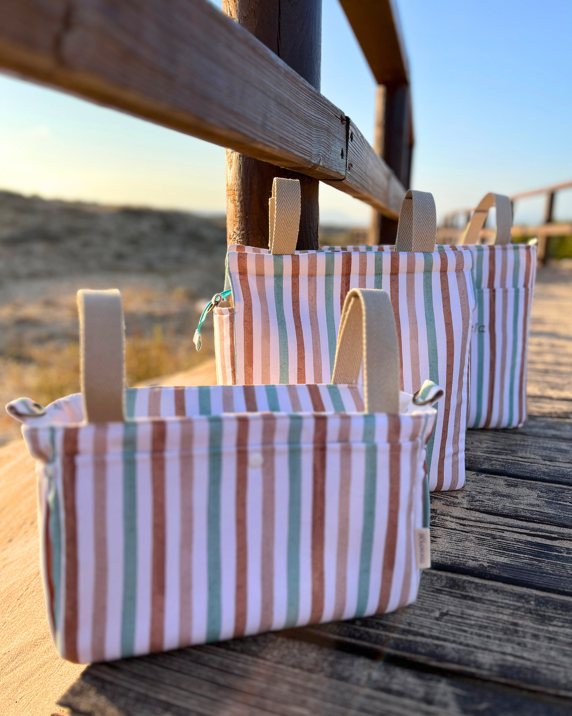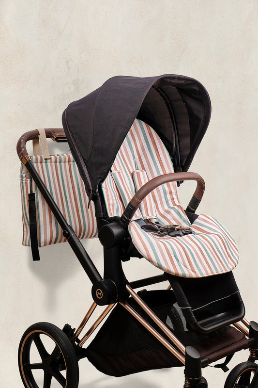 Bolso de carro gemelar – Riviera Stripe – Gran capacidad, organizado y personalizado