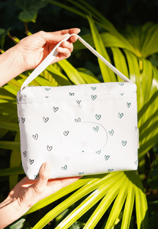 Sí. El interior es completamente impermeable y fácil de limpiar, ideal para prevenir derrames y proteger lo que llevas dentro. Tiene un estampado de corazoncitos suaves, que además aporta un toque delicado y original.